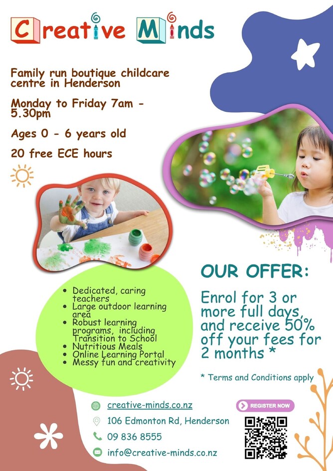 Enrol for 3 or more full days and receive 50% off your fees for 2 months*